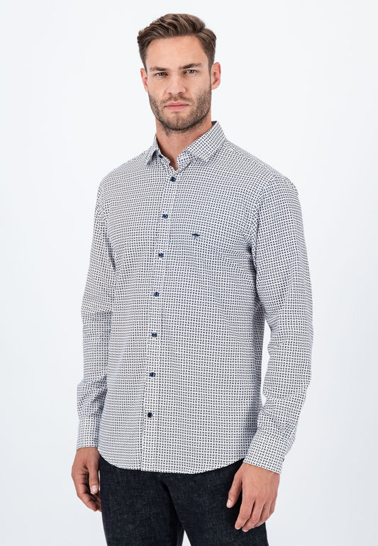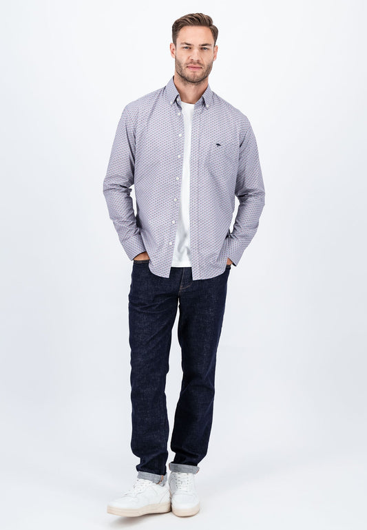Fynch Hatton Long-Sleeved Print Shirt - Dark Navy