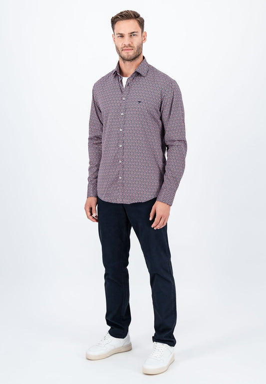 Fynch Hatton Long Sleeve Print Shirt - Ruby Red