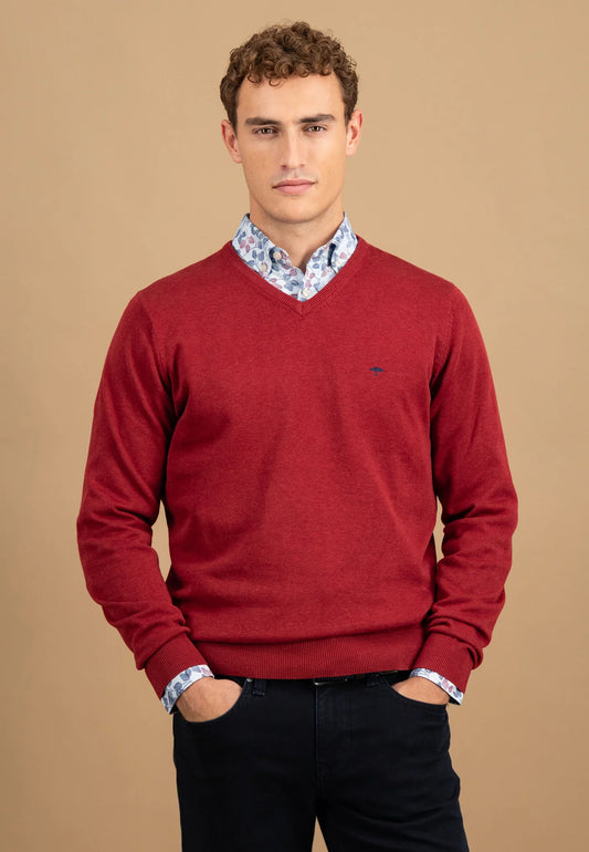 Fynch Hatton V-Neck SuperFine Jumper - Garnet Red