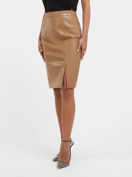 Guess Giorgia Faux Leather Midi Skirt - Brown
