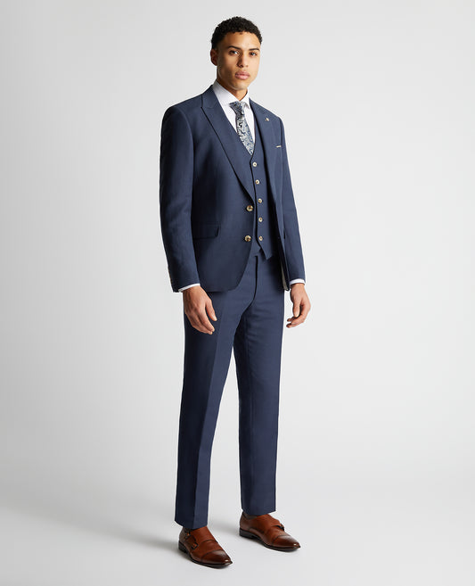Remus Uomo Linen Tapered Fit Blazer - Blue