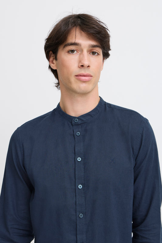 Casual Friday Anton Long Sleeve Grandfather Shirt - Navy