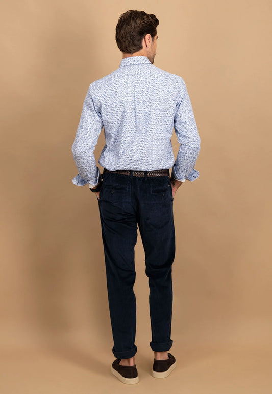 Fynch Hatton Modern Fit Print Shirt -Crystal Blue