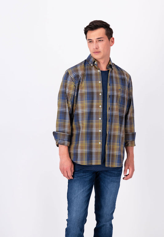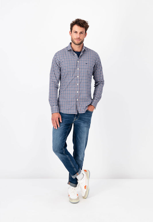 Fynch Hatton Long Sleeved Check Shirt - Blue