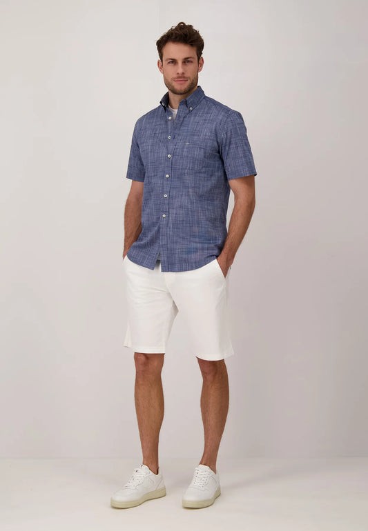 Remus Uomo Ashton Slim Fit Cotton Short Sleeve Shirt - Blue