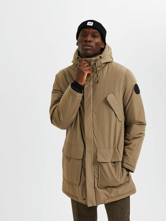 Selected Homme Padded Parka Coat - Brindle