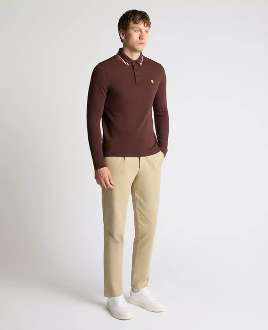 Remus Uomo Long Sleeve Pique Polo Shirt - Brown