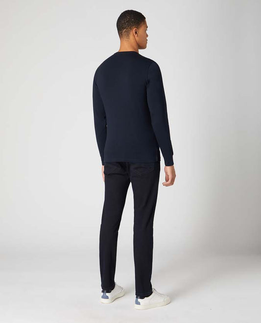 Remus Uomo Cotton Stretch Long Sleeve T-Shirt - Navy
