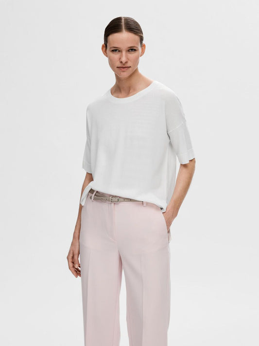 Selected Femme Knitted T-Shirt - Snow White