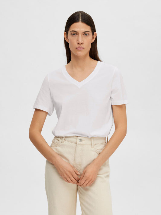 Selected Femme Classic V Neck Tee - White