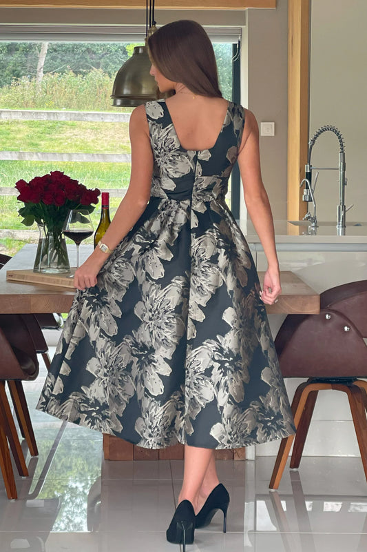 Girl In Mind Jesinia Jacquard Midi Dress - Black