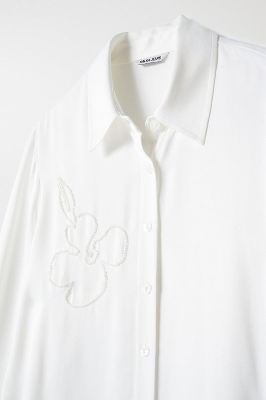 Salsa Sequin Embellished Satin Shirt - Light Pearl