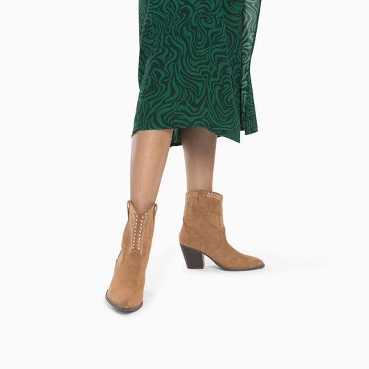 Vanessa Wu Danae Ankle Cowboy Boots - Camel