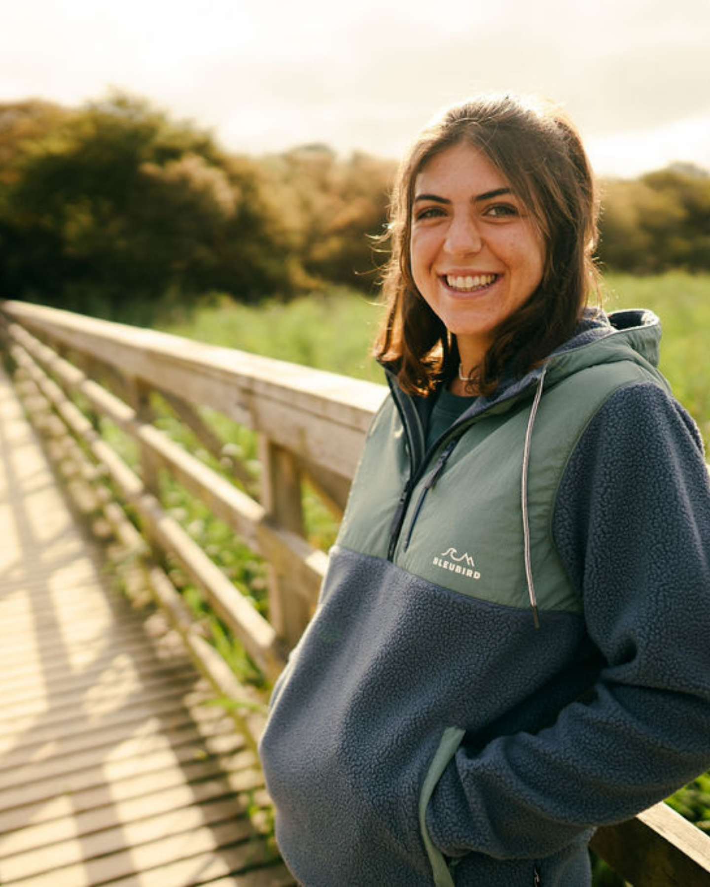 Stay warm and protected with the Bleubird Polar Hybrid Willow fleece. This unisex 1/4 zip hooded fleece features a water-repellent ripstop upper for added durability and weather resistance. Made from 100% recycled polyester, it combines comfort, style, and sustainability, making it the perfect choice for any adventure.