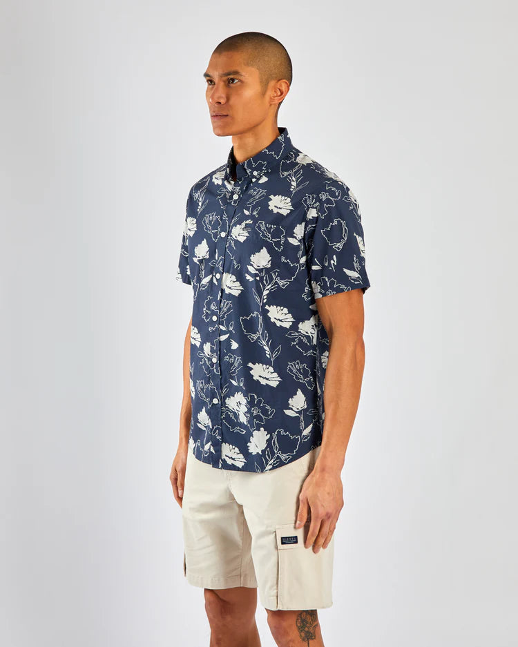 Unleash your wild side with the Diesel Wilder Short Sleeved Shirt in navy print. This energetic shirt features an all over print, a single pocket with a Diesel tag on the chest, and a concealed button down collar. Made from 100% cotton, it's both stylish and comfortable. The model wears a size M, and it's recommended that you stick to your regular size. Show off your unique style with this must-have shirt!