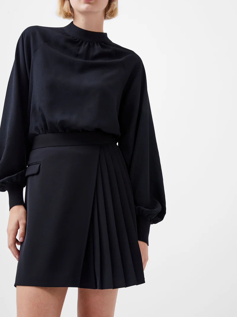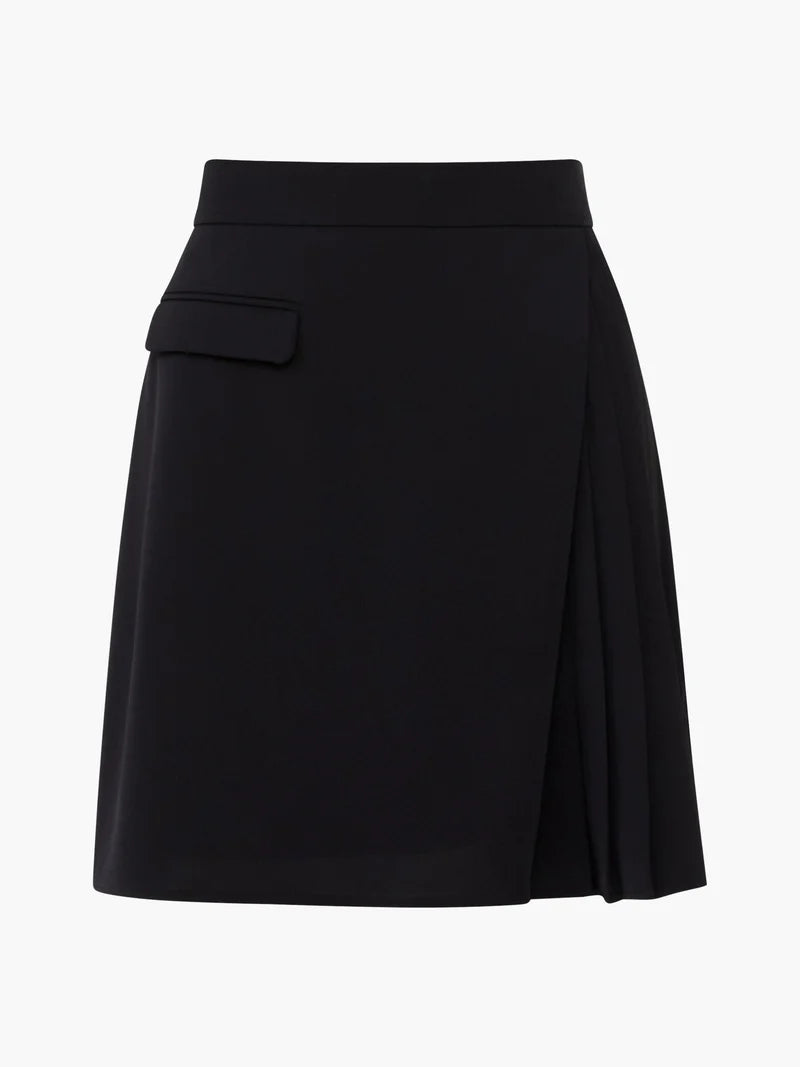 Elevate your wardrobe with our French Connection Harrie Pleated Skirt in classic black. This versatile mini skirt features a smooth body and faux flap pocket, perfect for transitioning from work to weekend. The soft fabric and pleated side insert add a touch of sophistication. A must-have for any fashion-forward individual!