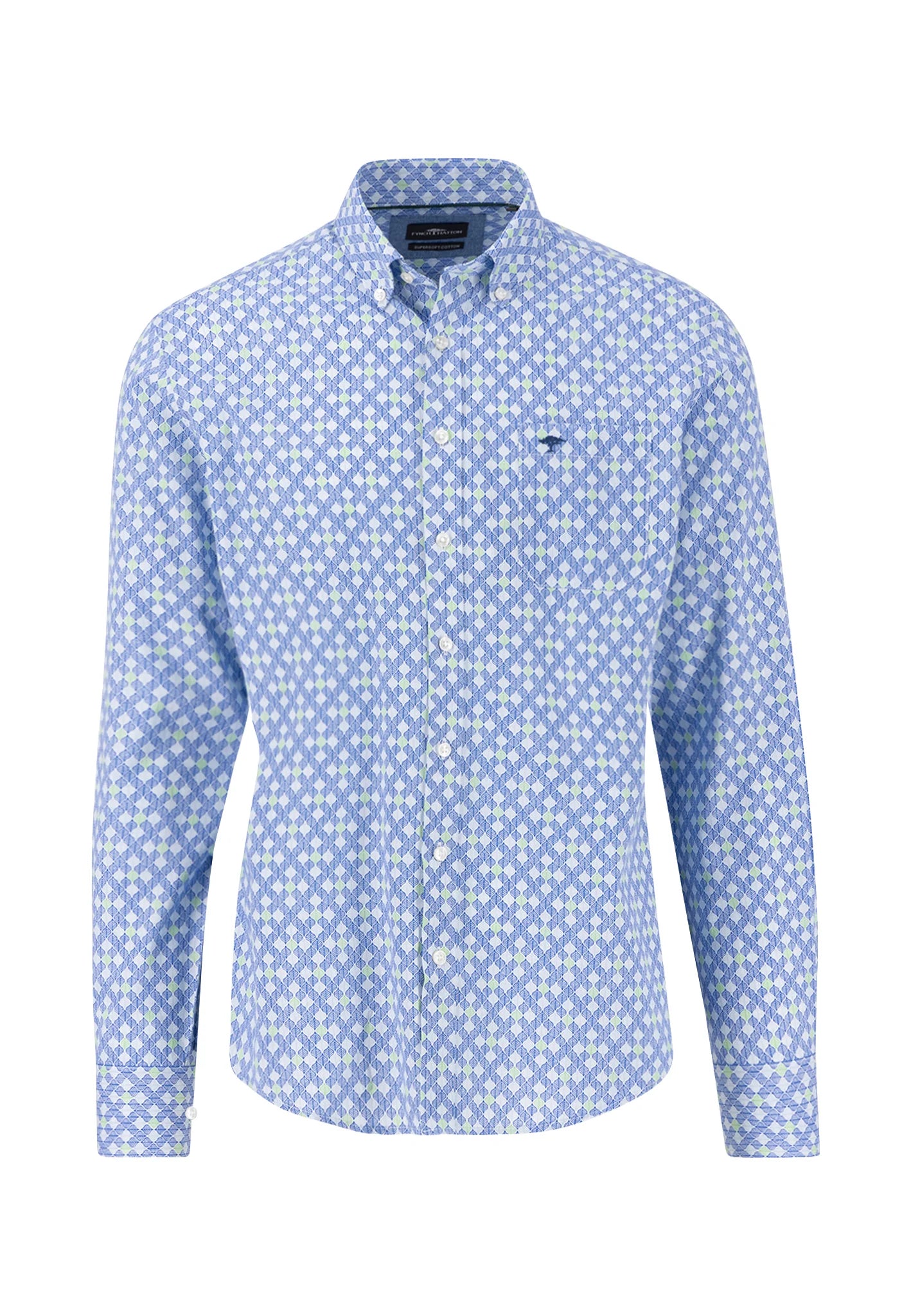 Fynch Hatton Button Down Print Shirt - Strong Blue