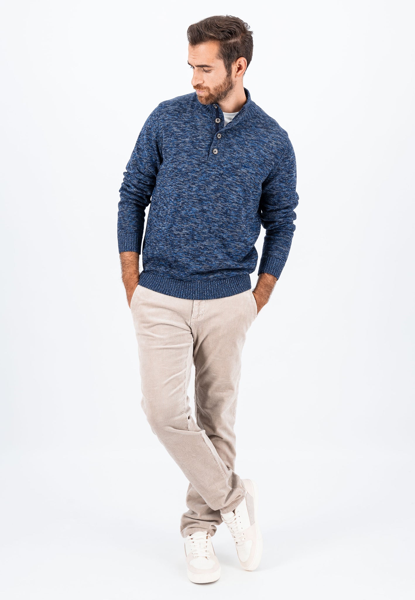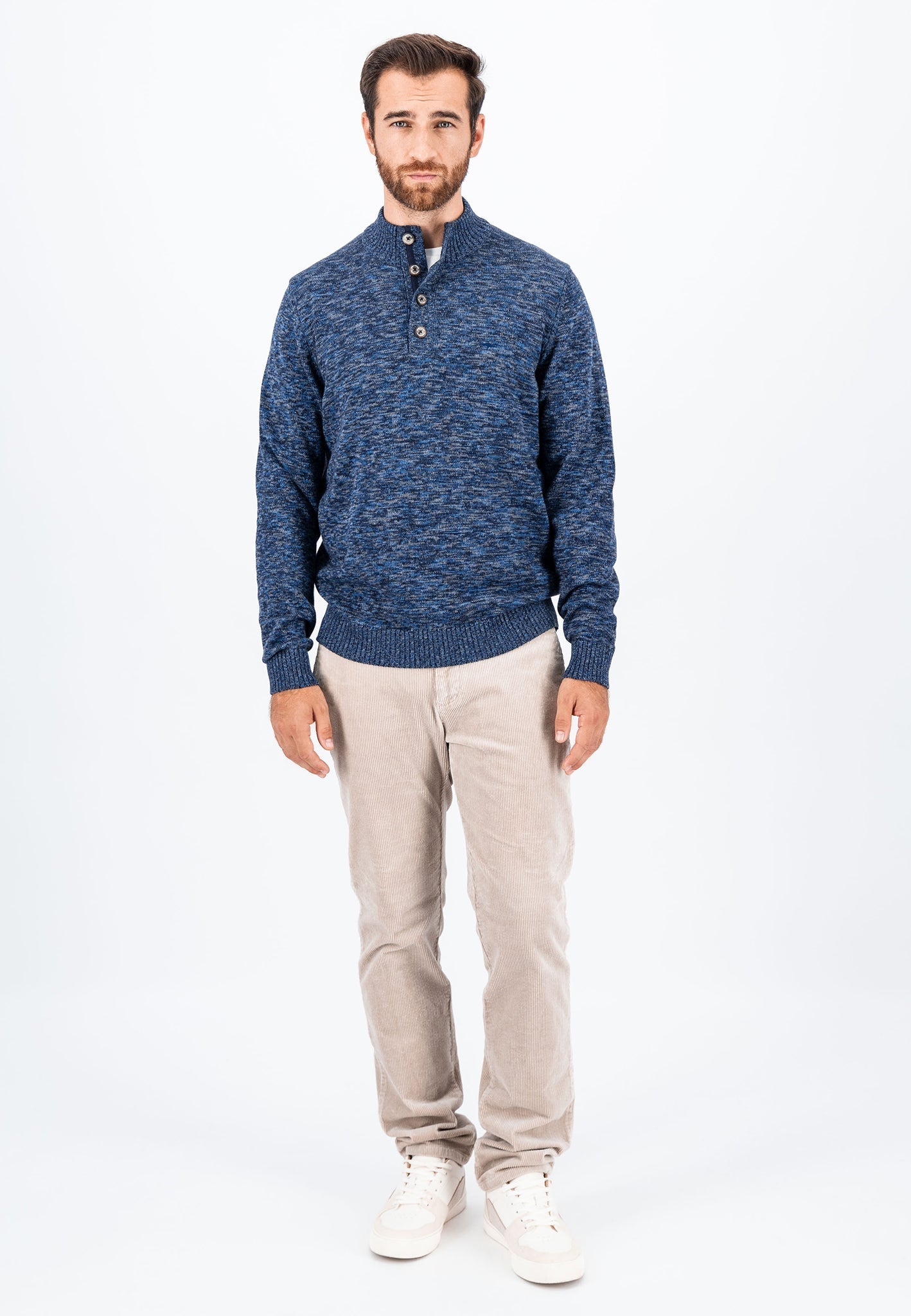 Elevate your wardrobe with the Fynch-Hatton Buttoned Troyer Knit in Navy. Its mottled knit design exudes timeless elegance, perfect for any occasion. The buttoned troyer collar allows for customizable style and comfort, making it a versatile piece for both casual and business settings. Sophisticated and refined, this sweater is a must-have for the modern gentleman.