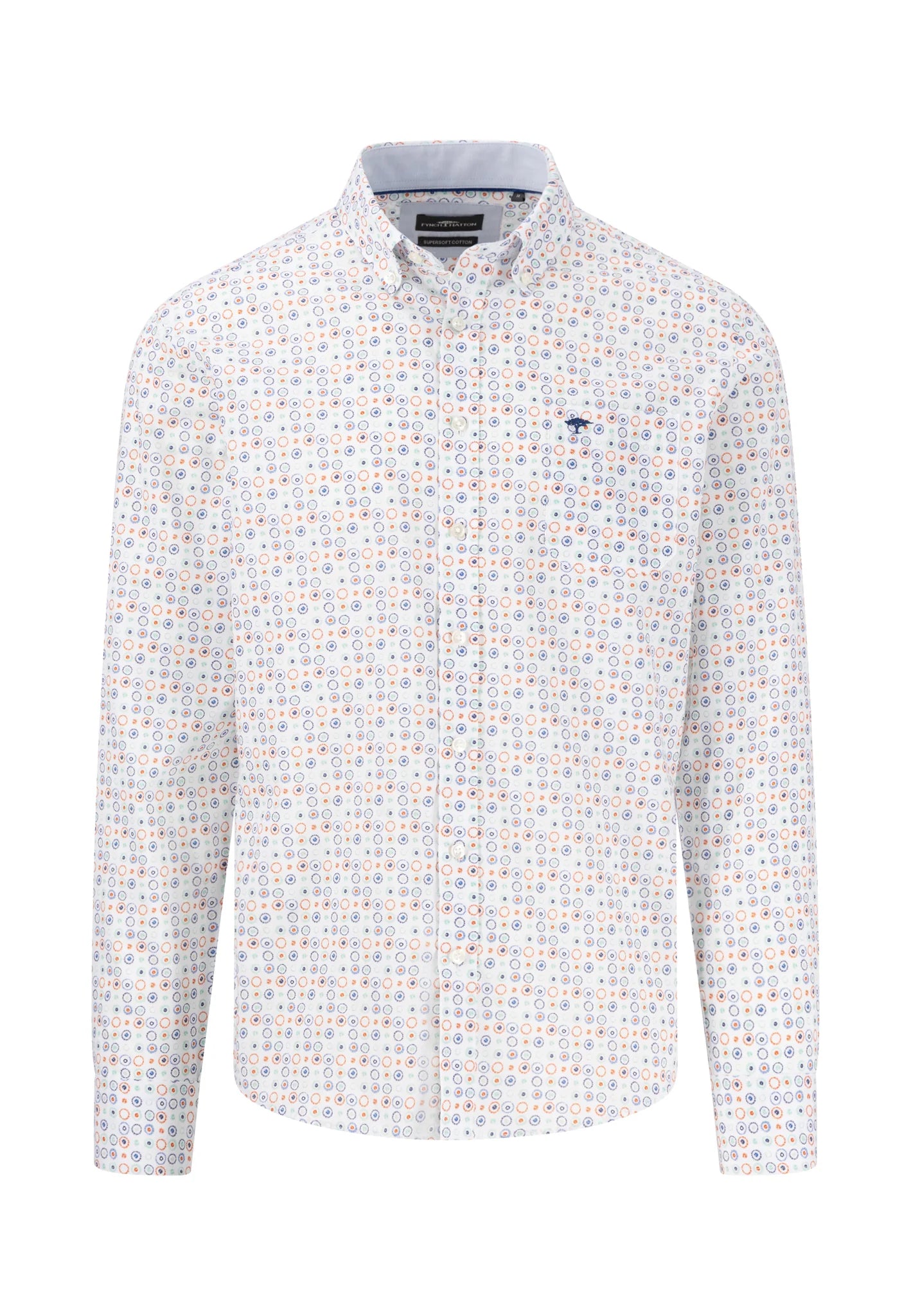Introducing the Fynch Hatton Combi Print Shirt - Turf Green. Made with high-quality cotton, this shirt features a stylish point pattern and classic button-down collar. Its subtle pattern adds a modern touch to your look, while the soft, durable fabric provides top-notch comfort. Perfect for any occasion, this shirt is a must-have for quality-conscious gentlemen.