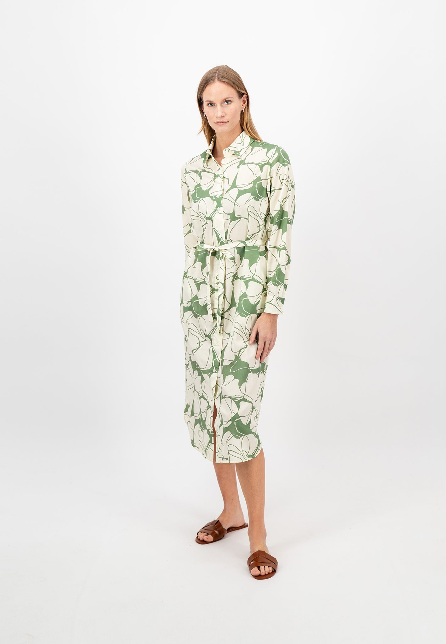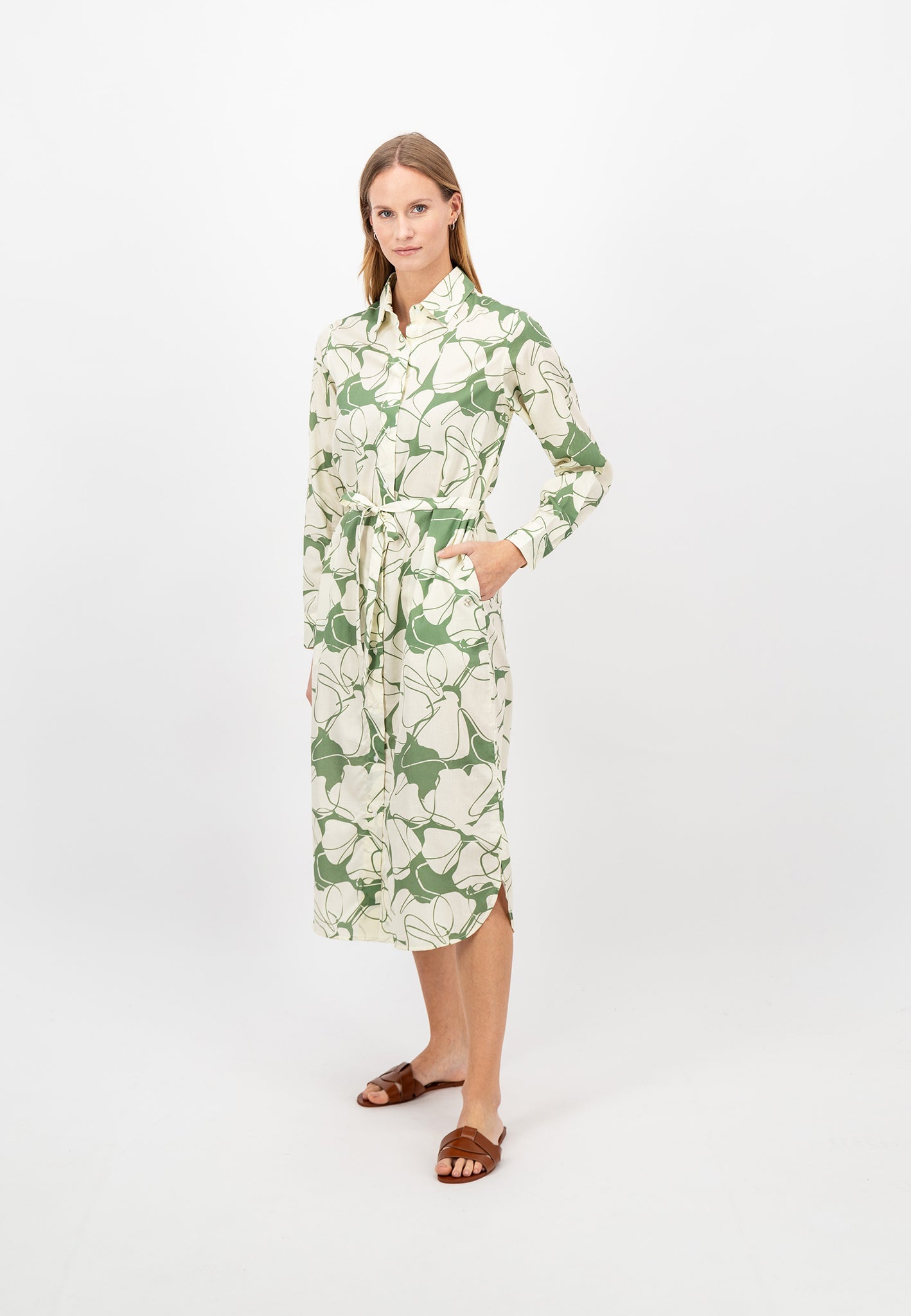 Fynch Hatton Flower Patterned Shirt Dress - Reed Green