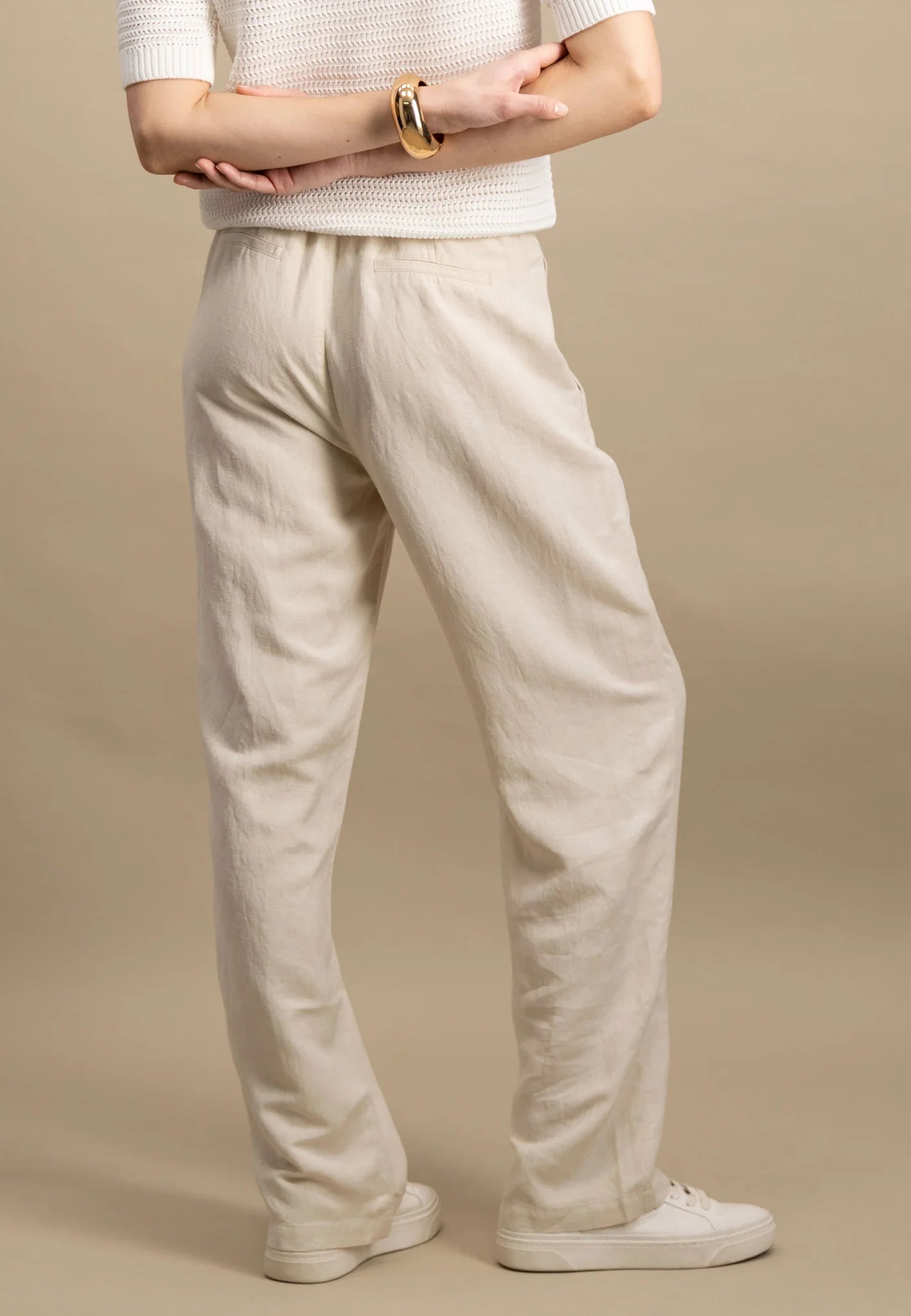 Fynch Hatton Pants Straight Linen Mix - Sand