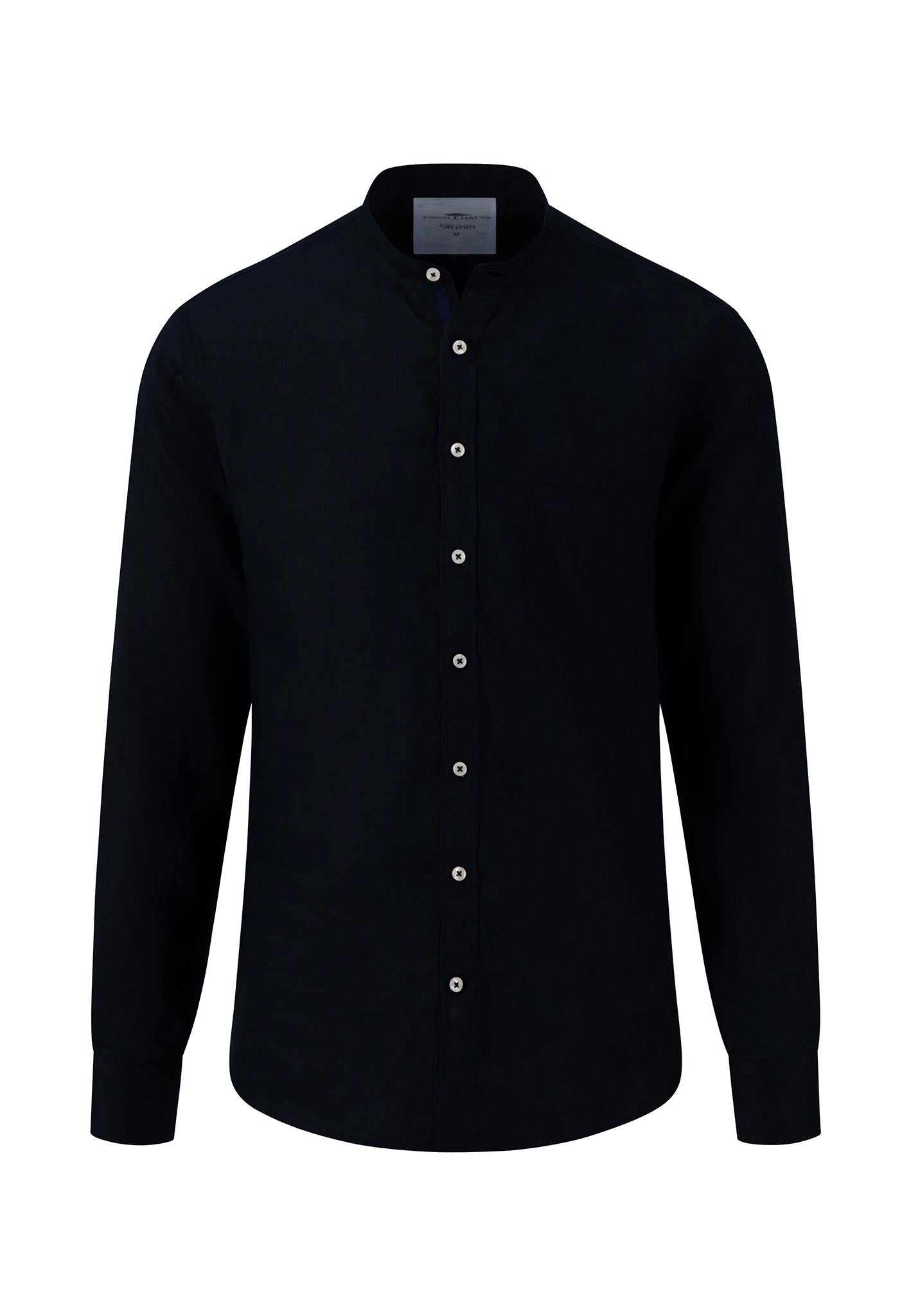 The Fynch Hatton Pure Linen Shirt in navy is the perfect summer staple. Made from premium linen, this casual fit shirt features a comfortable stand-up collar, cuffed sleeves, and a rounded hem. The natural structure of the fabric highlights the trendy color, while the logo embroidery adds a touch of style. Care instructions included.