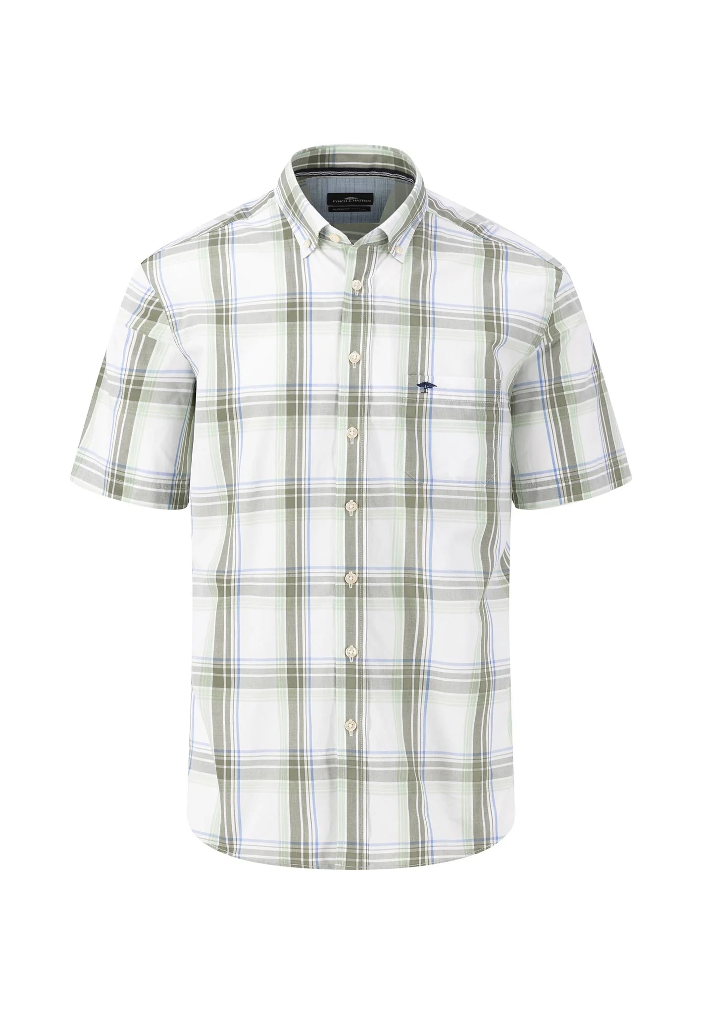 Experience the ultimate comfort with the Fynch Hatton Summer Greens Short Sleeve Check Shirt in Dusty Olive. Made of super soft cotton and featuring a striking caro pattern in fresh colors, this shirt is the perfect addition to your wardrobe. With a sporty button-down collar and logo embroidery on the breast pocket, it's a must-have this season.