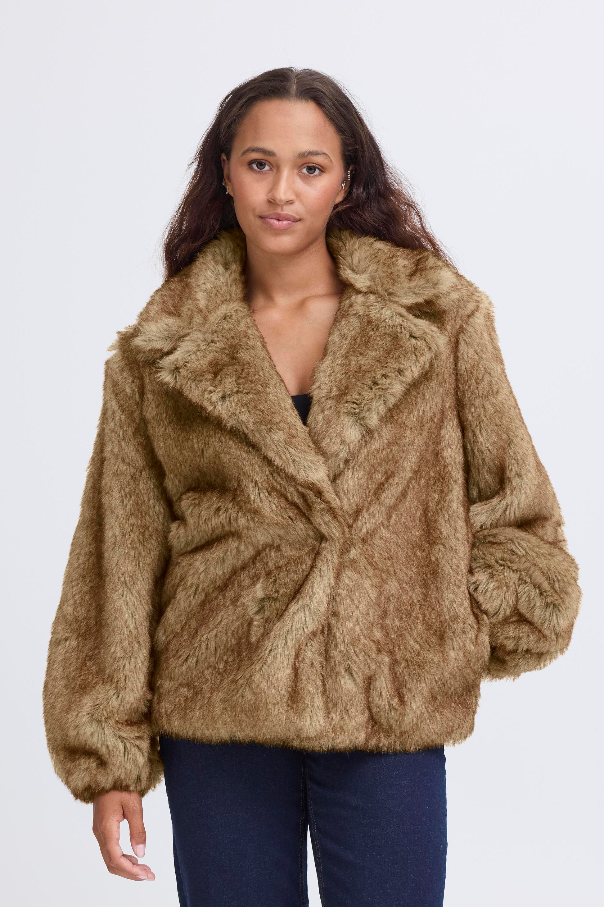 ICHI Fazoca Fur Jacket - Brown Melange