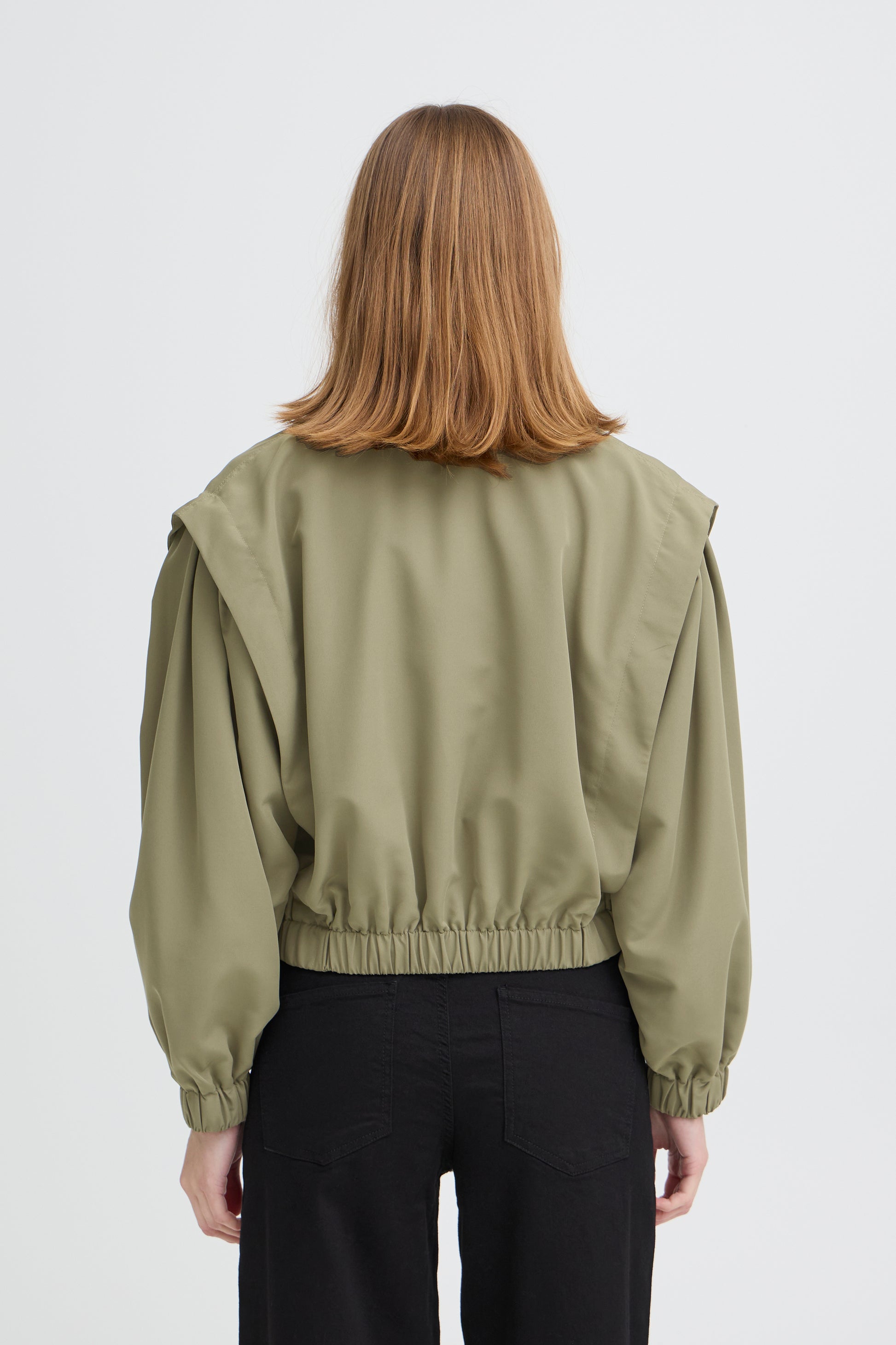 Sharp cropped trench jacket in khaki with a modern edge. Double-breasted closure and bold notched lapels create a structured silhouette, while gathered cuffs and flap pockets add contemporary detail. Strong shoulder lines deliver confidence and style. A versatile piece that works dressed up or down.
