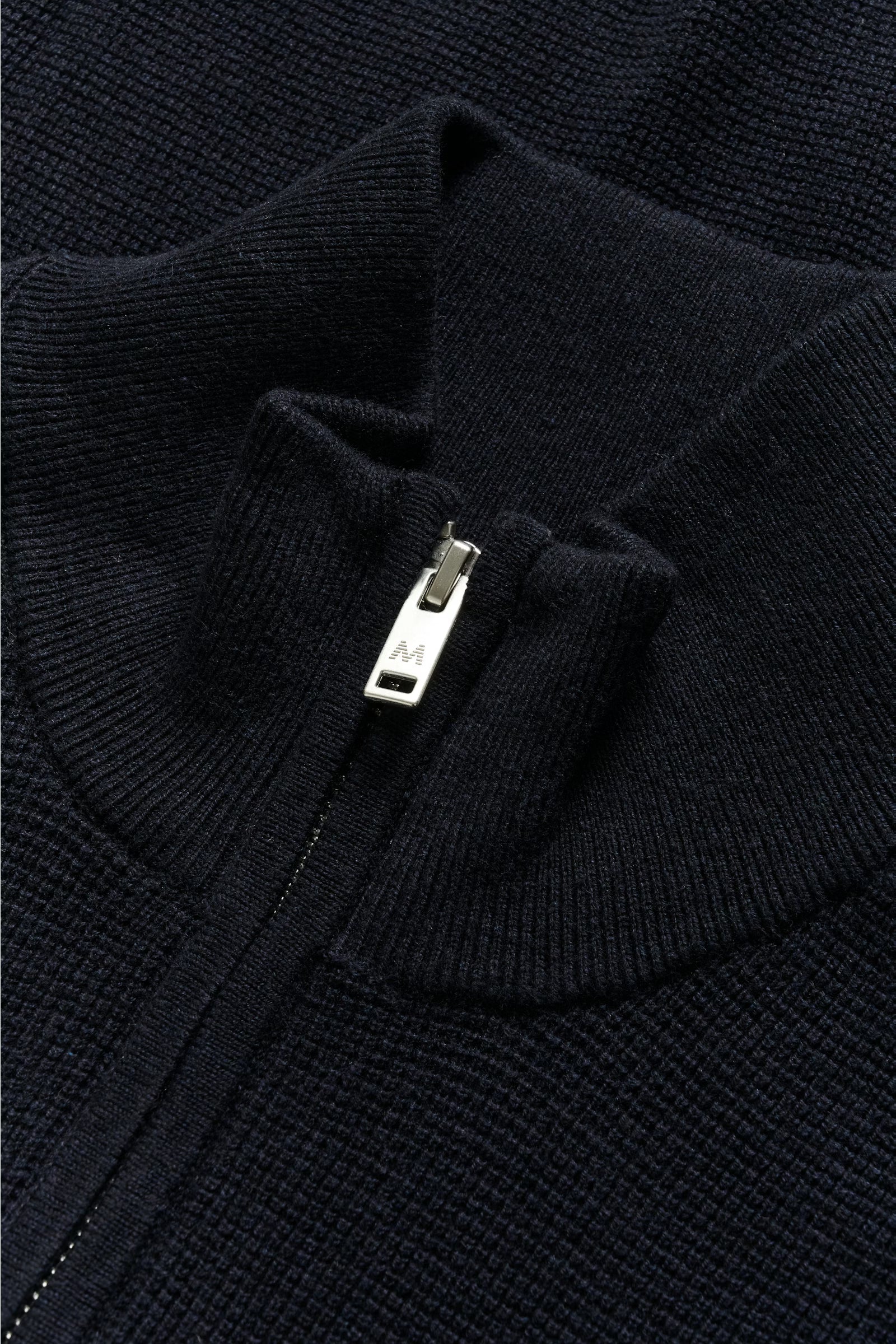 Layer with ease in this navy quarter-zip sweater. The high stand collar and relaxed regular fit deliver contemporary style without compromise. Long sleeves provide warmth while the modern cut keeps things streamlined. Ideal for transitional dressing and everyday versatility.