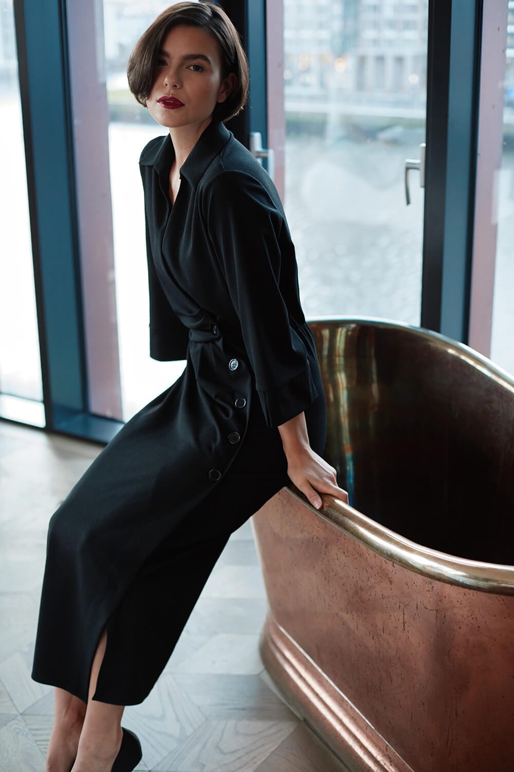 Peruzzi Side Button Dress - Black