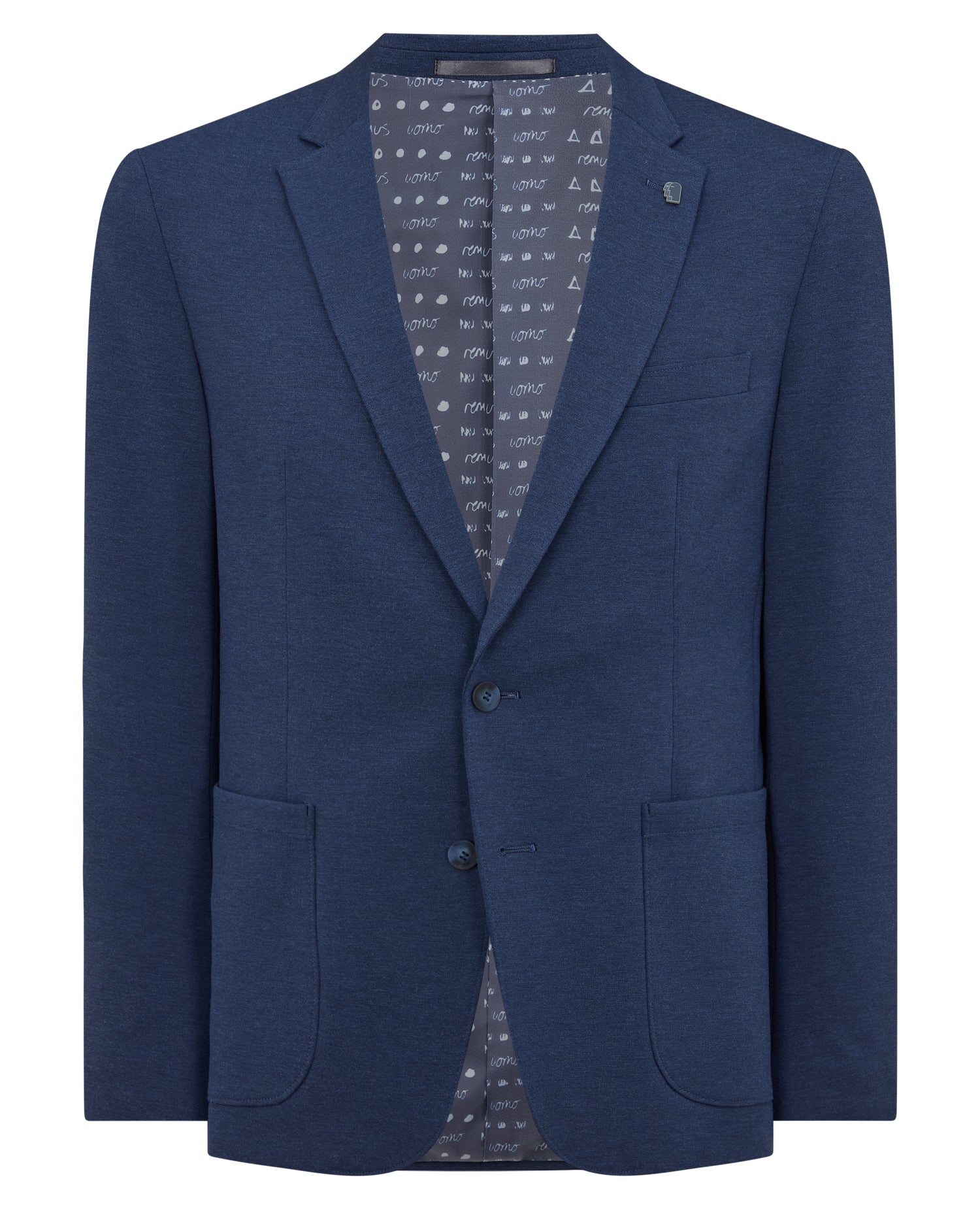 Introducing the Remus Napoli Blazer in a stunning blue hue. This jacket, designed by Remus Uomo, is expertly crafted with ultimate precision and attention to detail. With its sleek and sophisticated design, this blazer is the perfect addition to any wardrobe.