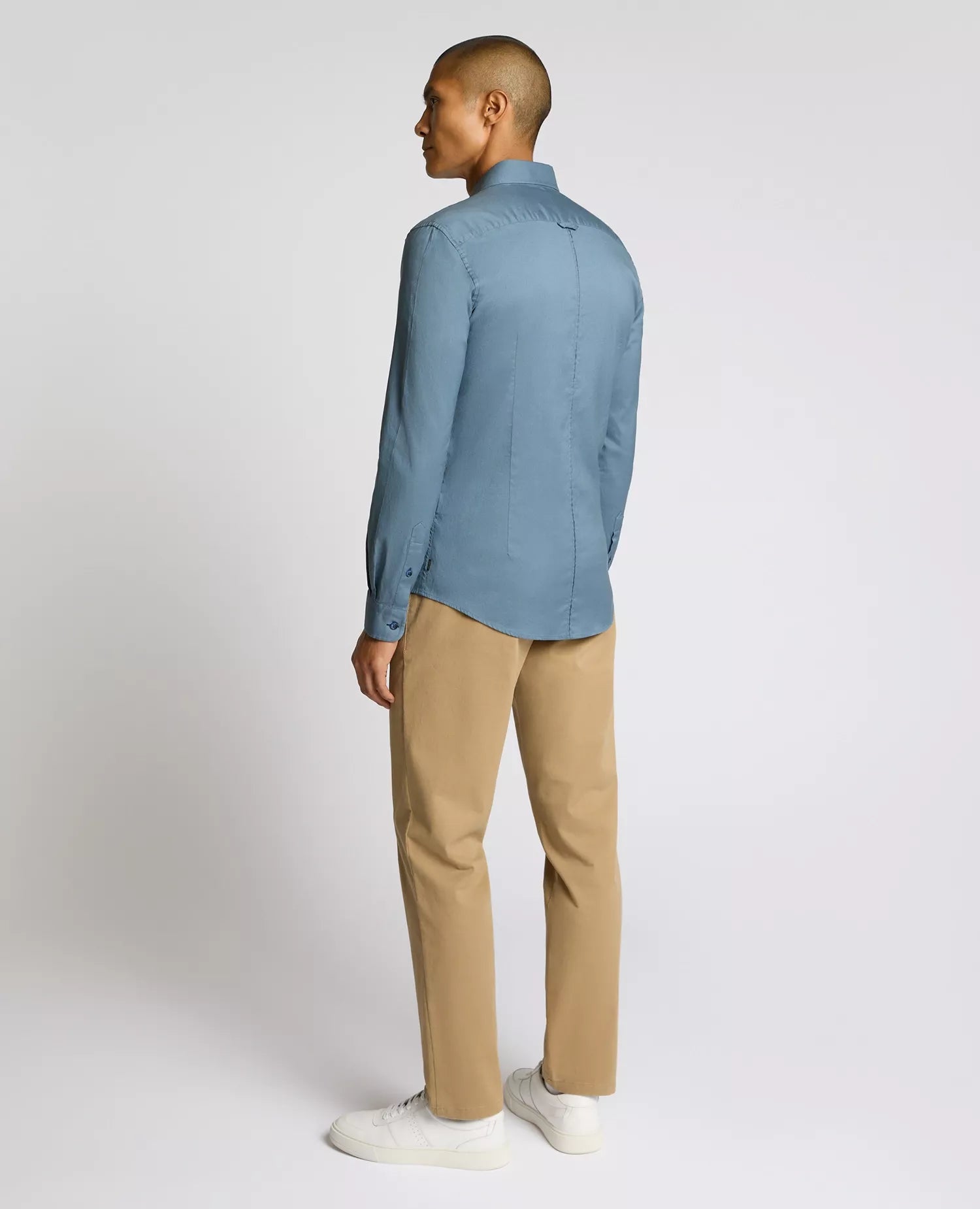 This slim fit Remus Uomo Oscar Shirt in blue is made from 100% cotton with a touch of mechanical stretch for comfort and a sleek look. Featuring a button-down collar, chest embroidery, and a tailed hem, it’s designed for everyday wear, easily dressed up or down. The inverted back pleat and back yoke loop add subtle style details.