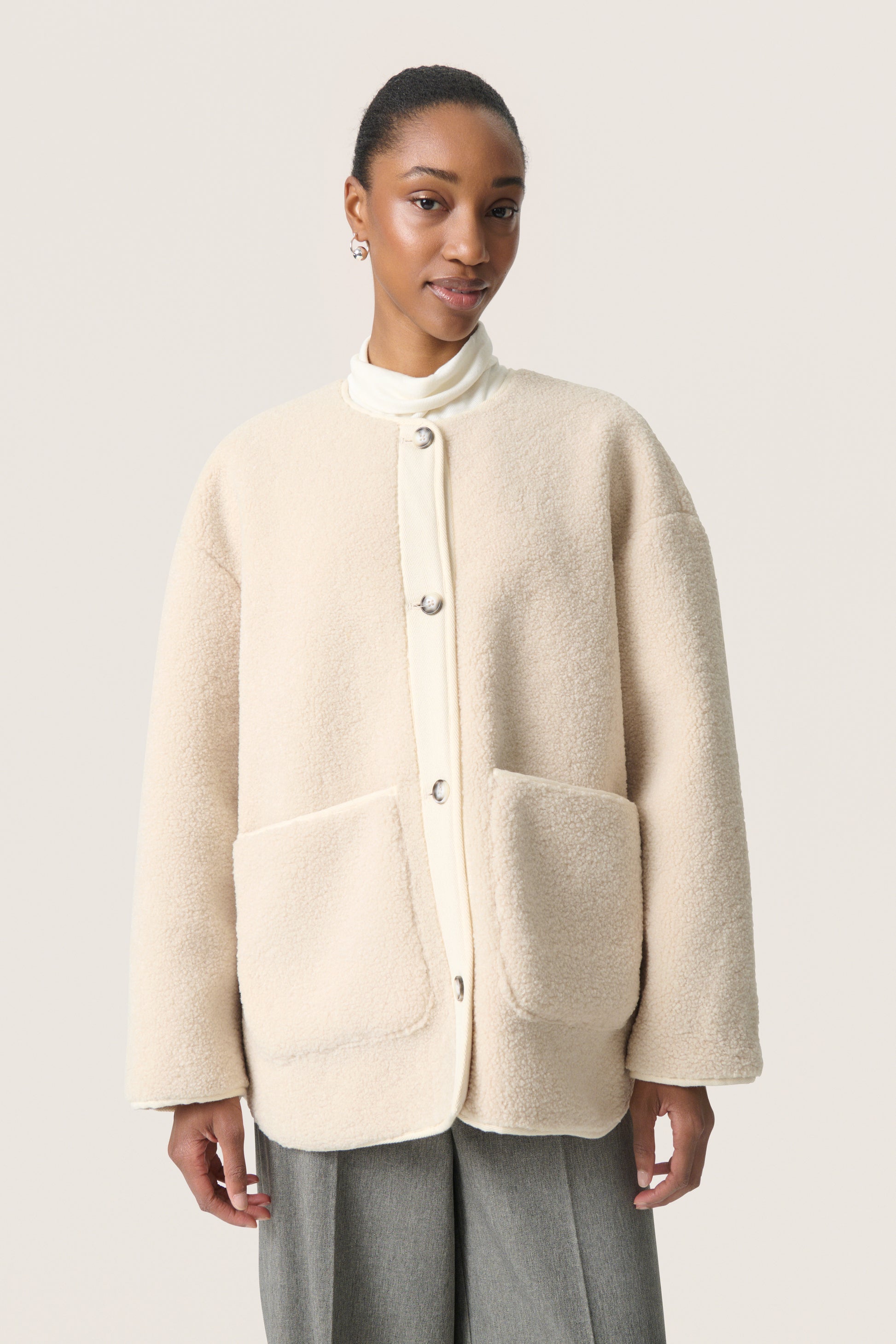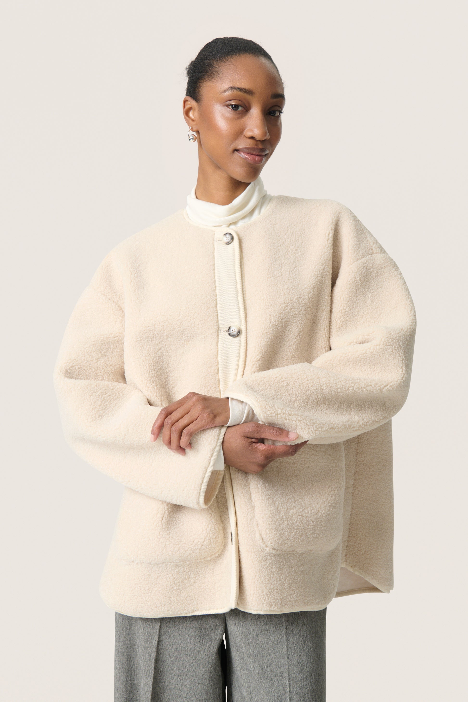 Embrace warmth and style with the Soaked Thalassa Jacket in Ancient Scroll. This cosy short teddy coat offers a plush, soft texture that keeps you snug on chilly days. Its versatile length pairs effortlessly with any outfit, making it an essential layer for comfort and trendy appeal throughout the season.