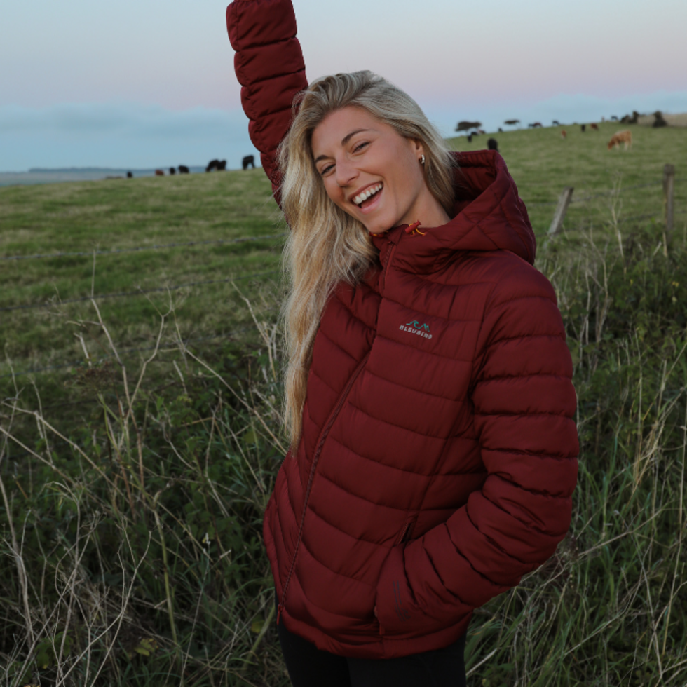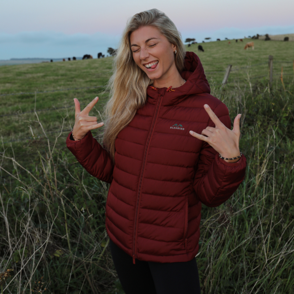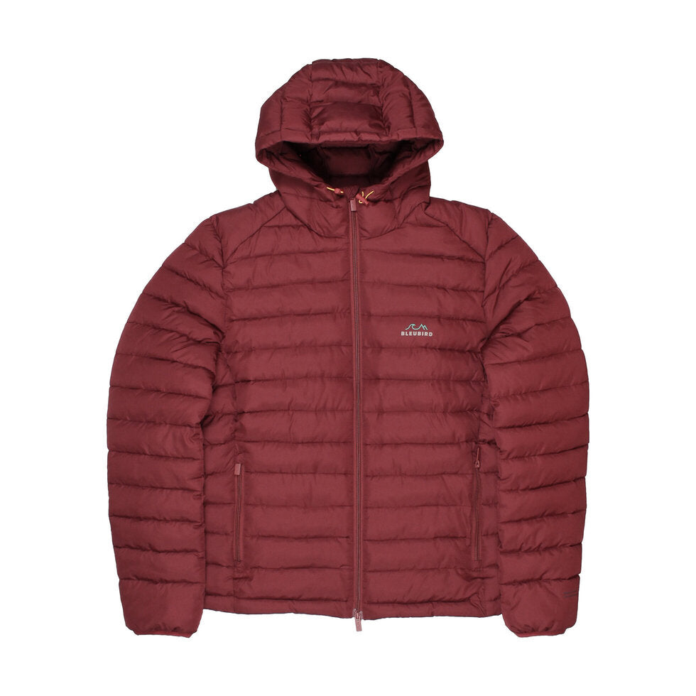 Get ready to take on any weather with the Bleubird Tabor Jacket in striking red! This mid-weight puffer jacket is water resistant and packable into a convenient stuff sack. Made from 100% recycled polyester, it's not only stylish but eco-friendly. Available in female sizing and packaged in biodegradable material.