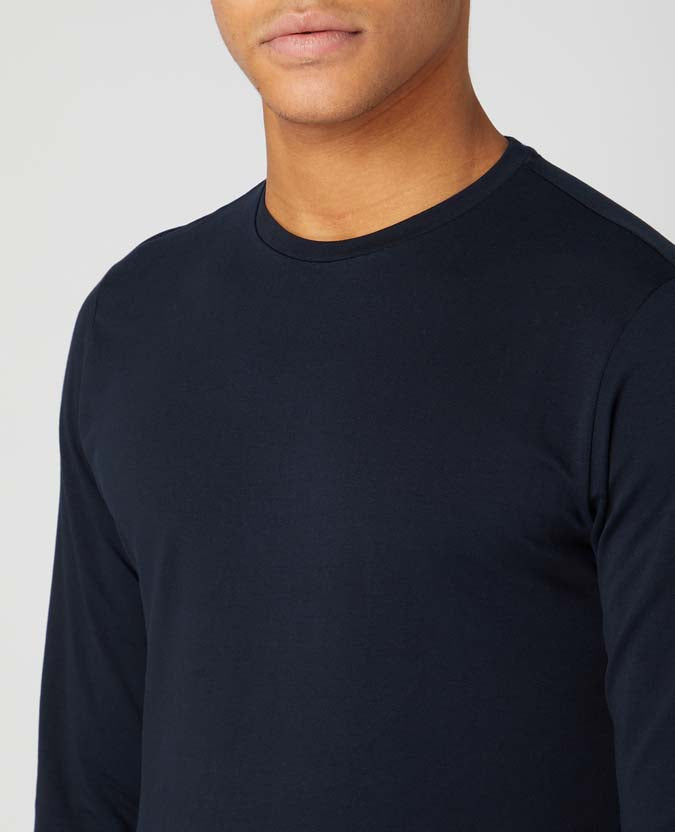 Remus Uomo Cotton Stretch Long Sleeve T-Shirt - Navy